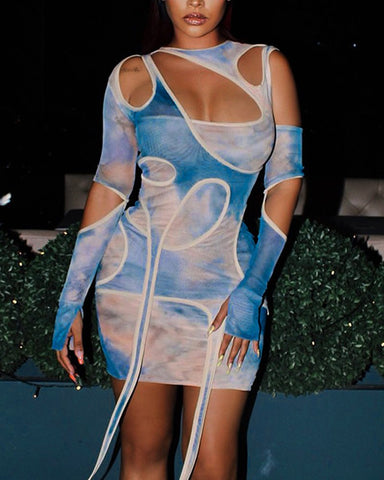 Drip with finesse in our long-sleeved semi-sheer summer mini dress