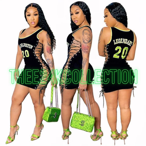 Jersey dress throwback styled mini-dress with laced up, hollowed sides