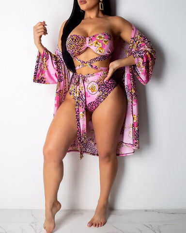 "Enhance your beach look with Make Me Blush - a pink cheetah print 3-piece bikini with a high waist and matching cover-up. Exude confidence in this super sexy design and feel comfortable all day long. Perfect for a fun day at the beach or poolside, Make Me Blush will make you stand out from the crowd."