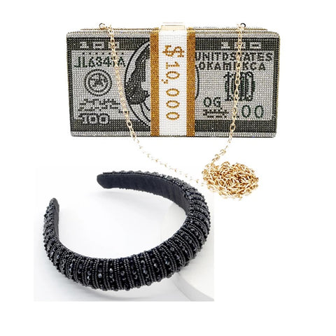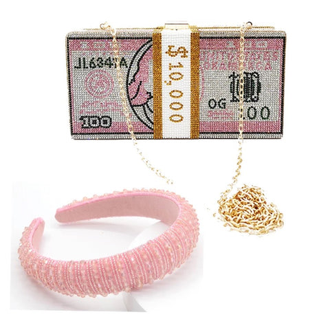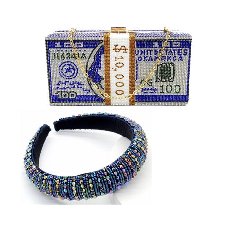 Heavyweight, good quality wristlet with new trending plush headband encrusted in crystals
