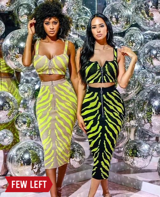 The Neon Safari is a body-hugging set made of high-quality spandex material. This durable fabric provides a comfortable and secure fit, ensuring that your clevage stay in place. The soft and stretchy spandex also offers a sleek and flattering silhouette for a confident and stylish look. Perfect for making a statement and luxurious settings.