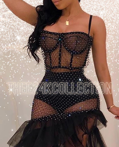 Tulle, Sheer Mesh Rhinestone Slit Party Dress comes with undergarments,Top/Bustier not included.